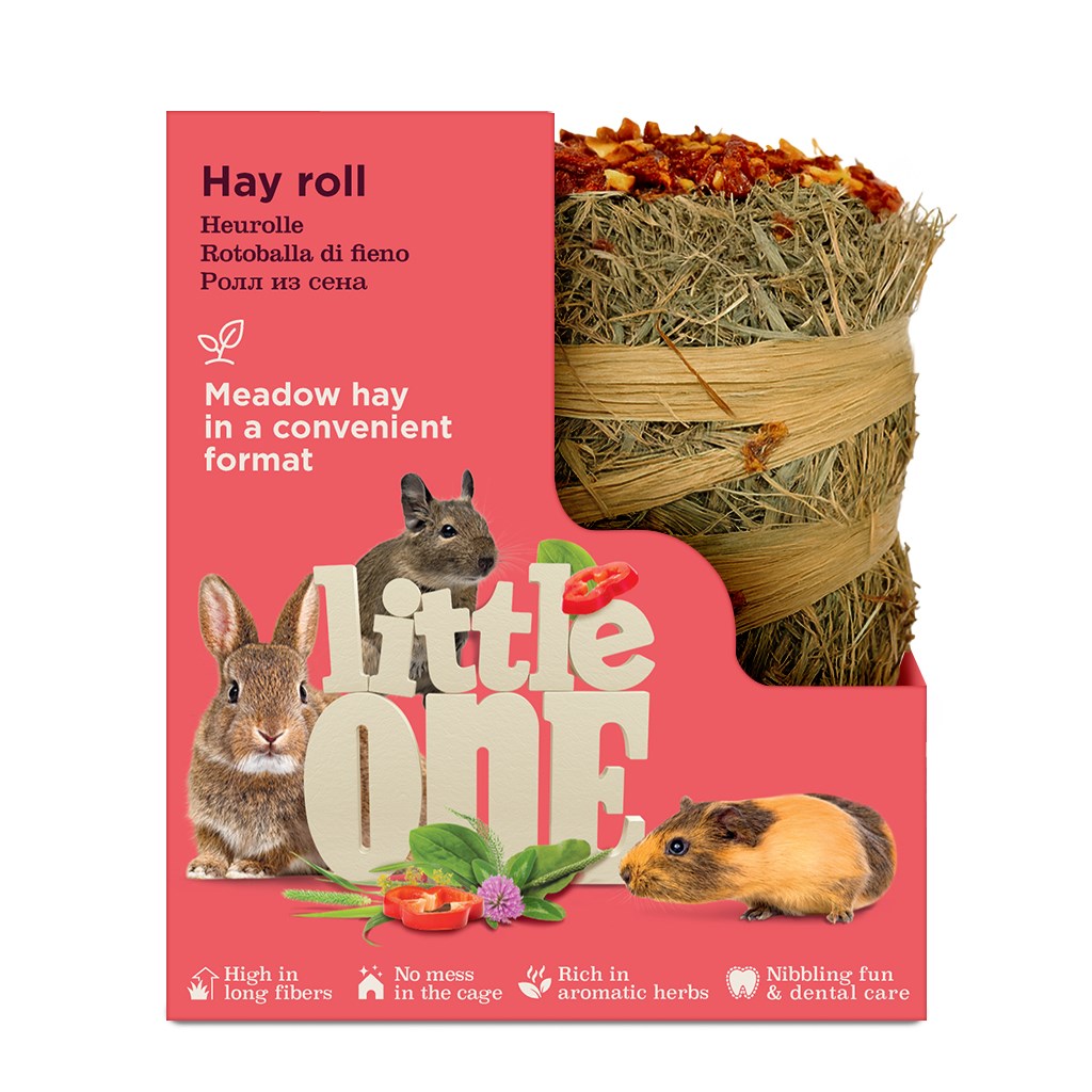 Little One Hooirollen combineren aromatisch weidehooi met smakelijke natuurlijke toppings en maken van het dagelijkse knabbelen een boeiende bezigheid voor kleine huisdieren. De lange vezels helpen de natuurlijke gebitsverzorging te ondersteunen, terwijl het compacte en nette rolformaat de kooi schoon houdt en actief knagen stimuleert.