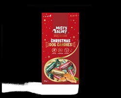 Misty & Bluey Christmas Dog Candies zijn hondensnoepjes die individueel verpakt zijn en in een feestelijke verpakking zitten. De snoepjes bevatten 90% kip en bestaan uit 100% natuurlijke ingredienten. Ze passen helemaal in de voortdurende trend van humanisering van het huisdier. Samen met je huisdier kerst vieren past daar helemaal in.