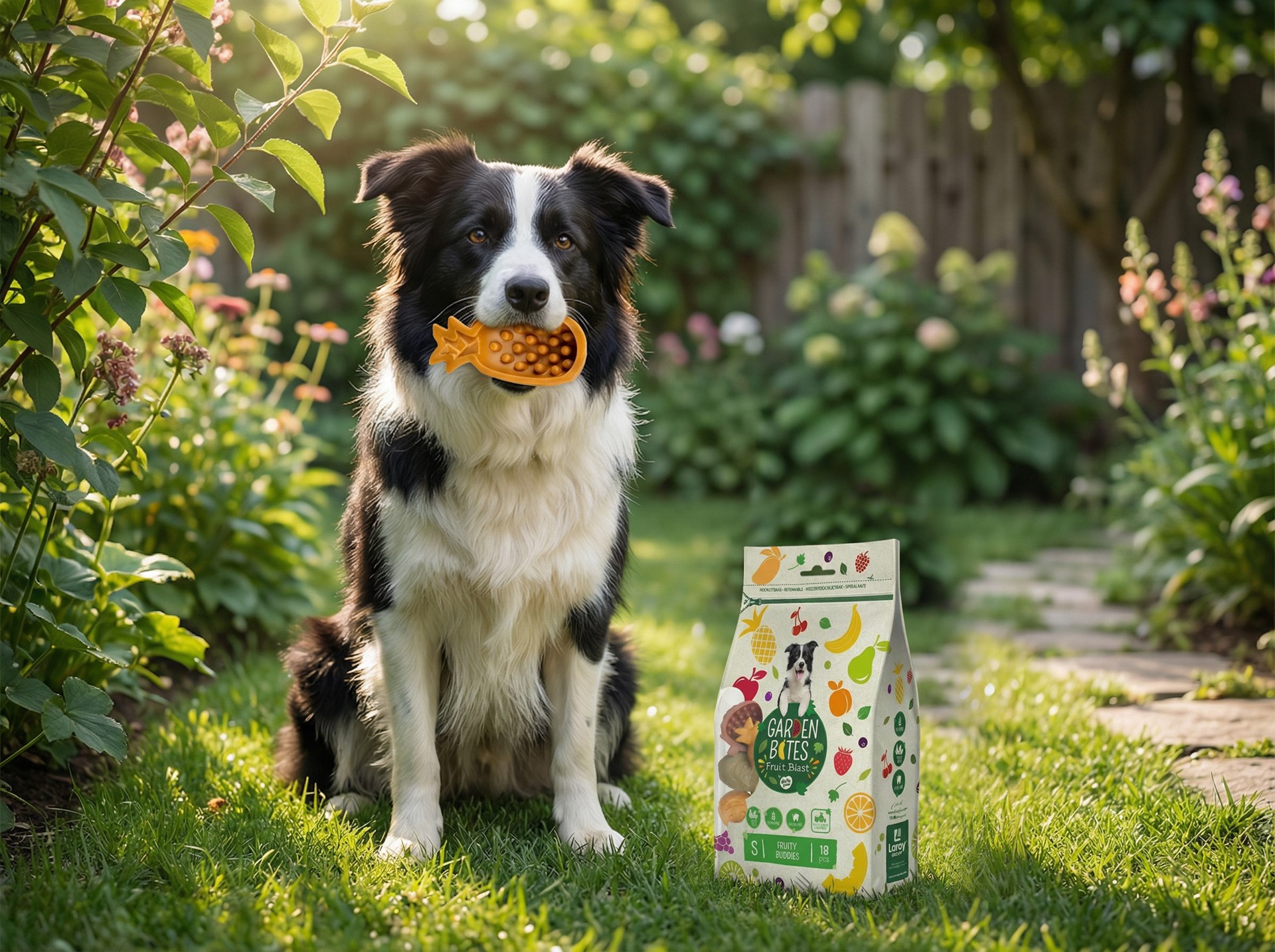 Net als de bestaande Fruity-varianten bestaan de snacks voor 55% uit zoete aardappel, een voedzaam ingrediënt rijk aan onder andere vitamines, calcium en ijzer. De speciale vorm helpt spelenderwijs het tandvlees te masseren en de tanden te reinigen, terwijl natuurlijk muntextract bijdraagt aan een frisse adem. Bovendien zijn de snacks 100% glutenvrij, licht verteerbaar en ideaal voor honden met allergieën. De kleurrijke vormen en nieuwe fruitsmaken maken Garden Bites Fruit Blast nu nóg onweerstaanbaarder.