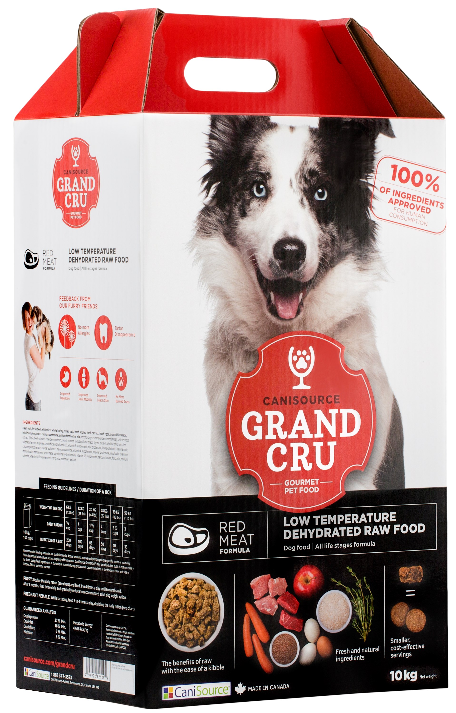 Canisource Grand Cru biedt een innovatieve benadering van droge diervoeding, gebaseerd op een uniek lage-temperatuurdehydratatieproces en het gebruik van 100% ingrediënten geschikt voor menselijke consumptie.