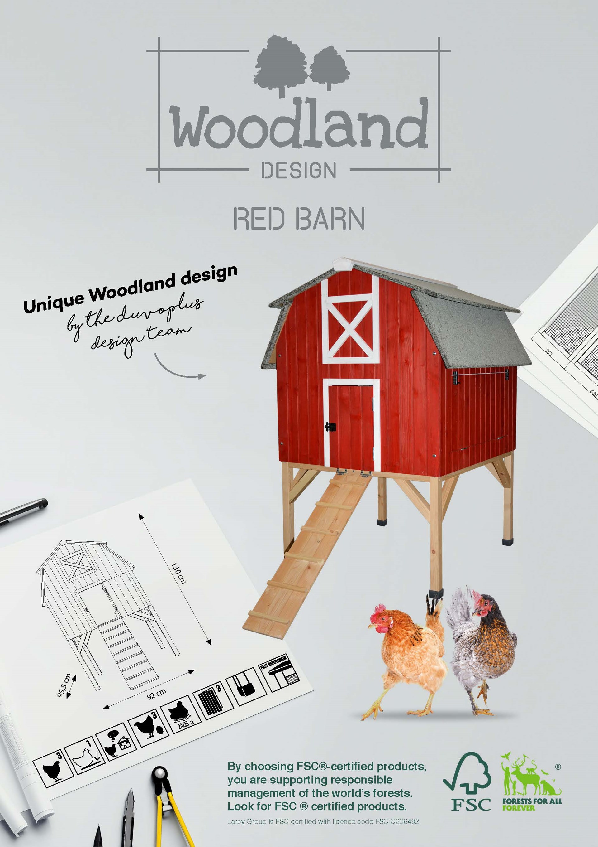 Maak kennis met dit duurzame kippenhok voor maximaal 3 kippen, from scratch ontwikkeld door ons eigen duvoplus Design Team. Dit 100% eigen design in typische Amerikaanse stijl combineert comfort en functionaliteit. Het hok is vervaardigd uit FSC-gecertificeerd hout en wordt geleverd in een FSC-verpakking. De efficiënte indeling met 3 gescheiden legbakken en 1 zitstok zorgt voor rust en welzijn. Het hok staat iets verhoogd en is bereikbaar via een loopbrug voor extra uitdaging. Dankzij de grote valdeur aan de achterzijde kunnen eitjes eenvoudig geraapt worden. Met een praktische hoogte van 50 cm vanaf de grond is het zeer gebruiksvriendelijk. Een doordacht en duurzaam nieuw item.