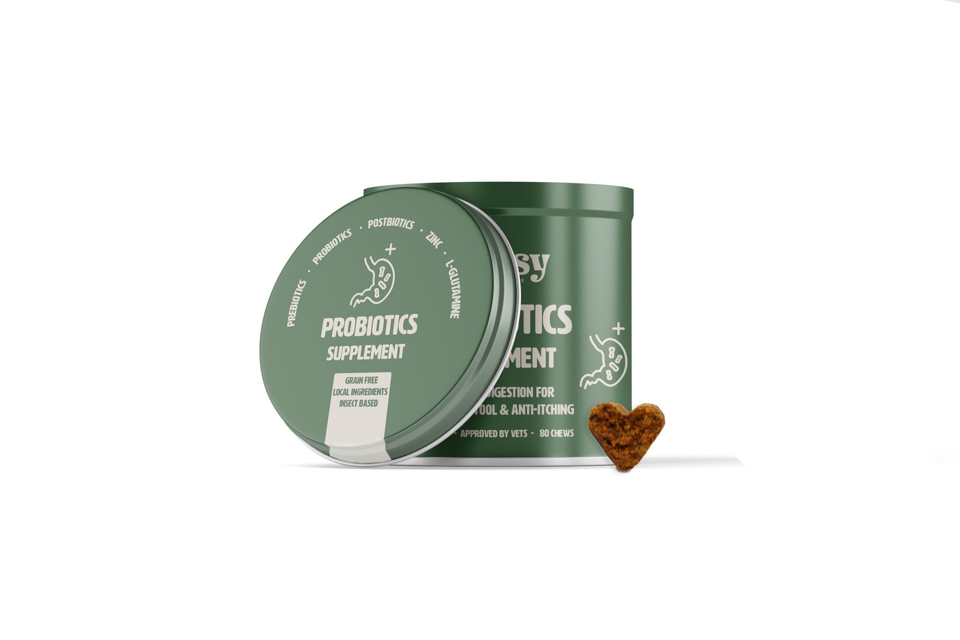 Een probiotica supplement met dierlijke eiwitten en 100% graan en gluten vrij. Op basis van natuurlijk ingrediënten en volledige hypoallergeen. Boven volledig in België gemaakt in de vorm van een snack.