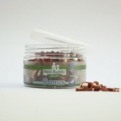 Het belonen van je hond tijdens training is nog nooit zo makkelijk én verantwoord geweest. BestBuddy Bonus Trainingssnacks zijn gemaakt van pure, natuurlijke ingrediënten en combineren gezonde kwaliteit met praktisch gemak. Dankzij hun hypoallergene eigenschappen en hapklare formaat zijn ze de ideale keuze voor elke trainingssessie.