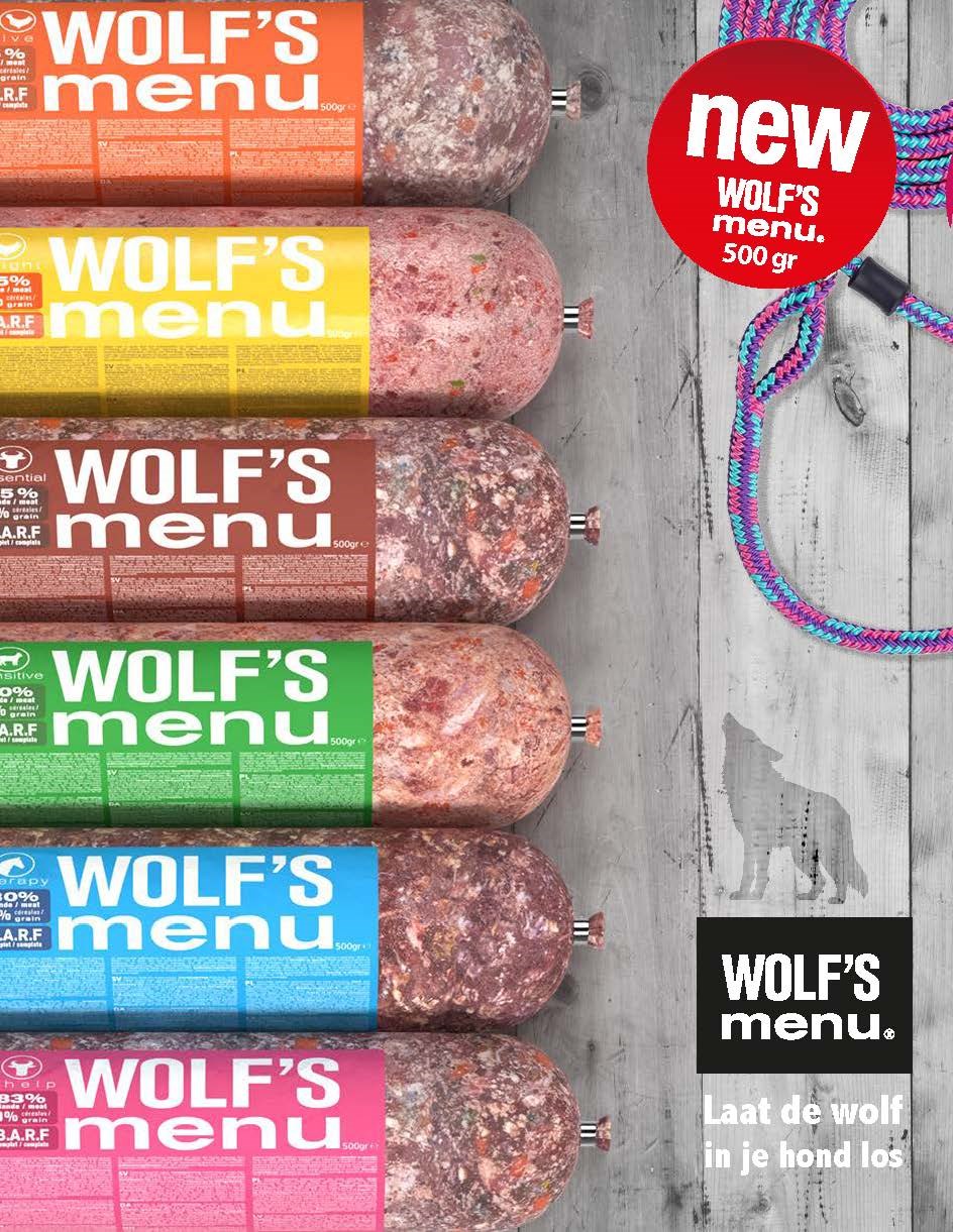 Wolf’s Menu® is een complete, makkelijk verteerbare, vriesverse natuurvoeding voor honden. Het diepvriesvlees van Wolf’s Menu® biedt een uitgebalanceerde natuurvoeding, met 70-85% vlees (helft spiervlees, helft organen) zoals bij de prooi van de voorouder van de hond: de wolf.