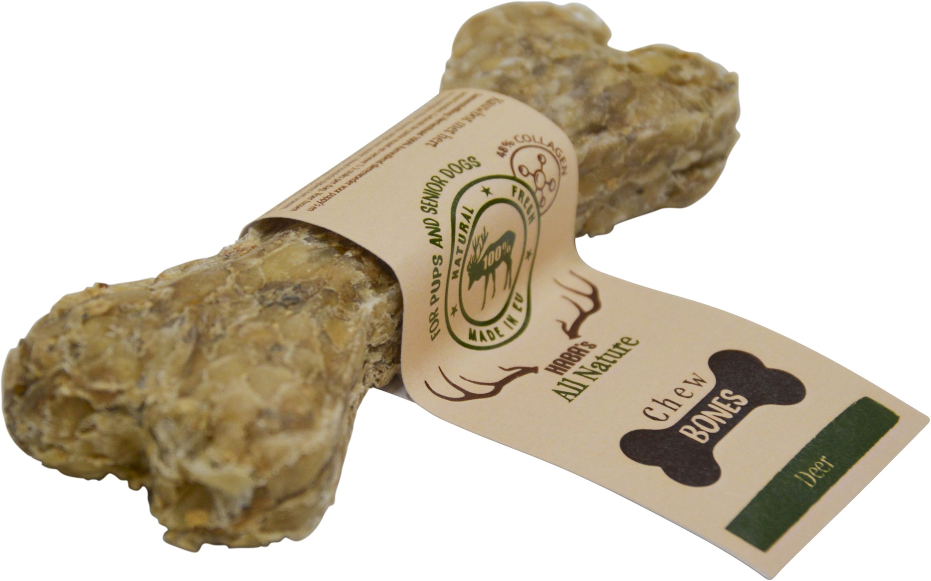 Geef jouw pup of senior hond een heerlijke, natuurlijke kauwervaring met HABA's All Nature Chewbones met hert.