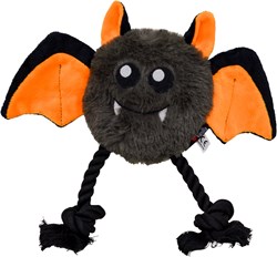 Zacht hondenspeelgoed in Halloweenthema in de vorm van een vleermuis. Gemaakt van zachte stof, voorzien van een pieper en touw voor extra speelplezier. Ideaal om mee te spelen, te trekken en te knuffelen.