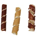 De stevige structuur zorgt voor langdurig kauwplezier en draagt bij aan een gezond gebit. Verkrijgbaar in 3 maten. Konijn 25%, Runderhuid 61.7%, maïszetmeel 6%, Tarwebloem 4%, Glycerin 3%, Zout0.1%, kaliumsorbaat0.2%