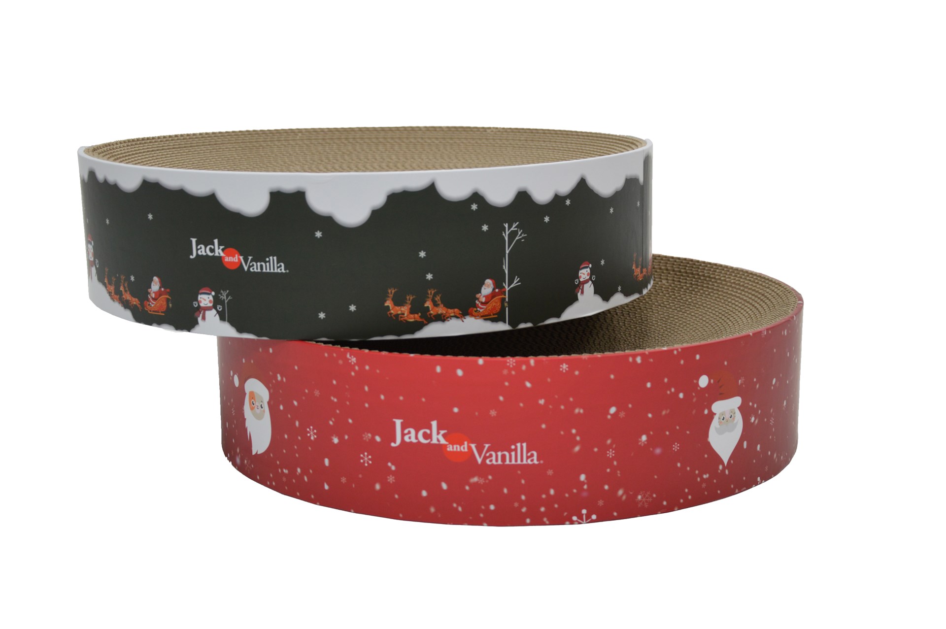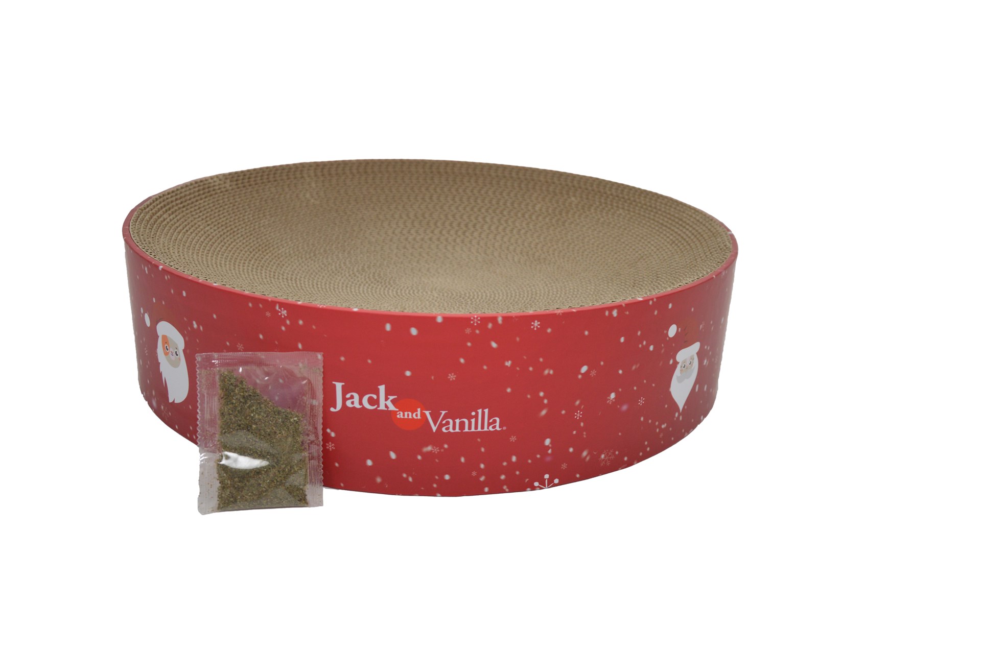 Ronde krabplank van stevig karton met vrolijke kerstillustraties. Ideaal om te krabben, op te liggen en te ontspannen. Inclusief kattenkruid om je kat extra aan te trekken.