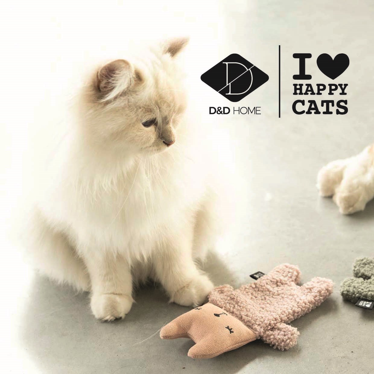 Ontdek de nieuwste kattenspeeltjes van D&D Home | I ♥ Happy Cats, ontwikkeld in samenwerking met kattengedragstherapeute Anneleen Bru. Van prooiballetjes met vogelgeluid tot trappelkussens en interactieve speeltjes: elk ontwerp stimuleert het natuurlijke jacht-, speel- en trapgedrag van je kat. Zachte teddystof, speelse details en doordachte vormen zorgen voor actief spel, stressontlading en puur plezier. Perfect voor zowel zelfstandige speelmomenten als interactieve jachtspelletjes.