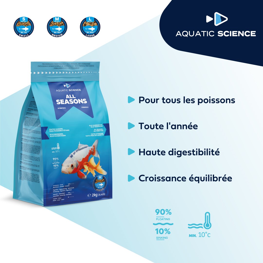All Seasons van Aquatic Science is een compleet basisvoer voor siervissen, speciaal ontwikkeld voor een evenwichtige groei en verhoogde weerstand tegen ziekten.