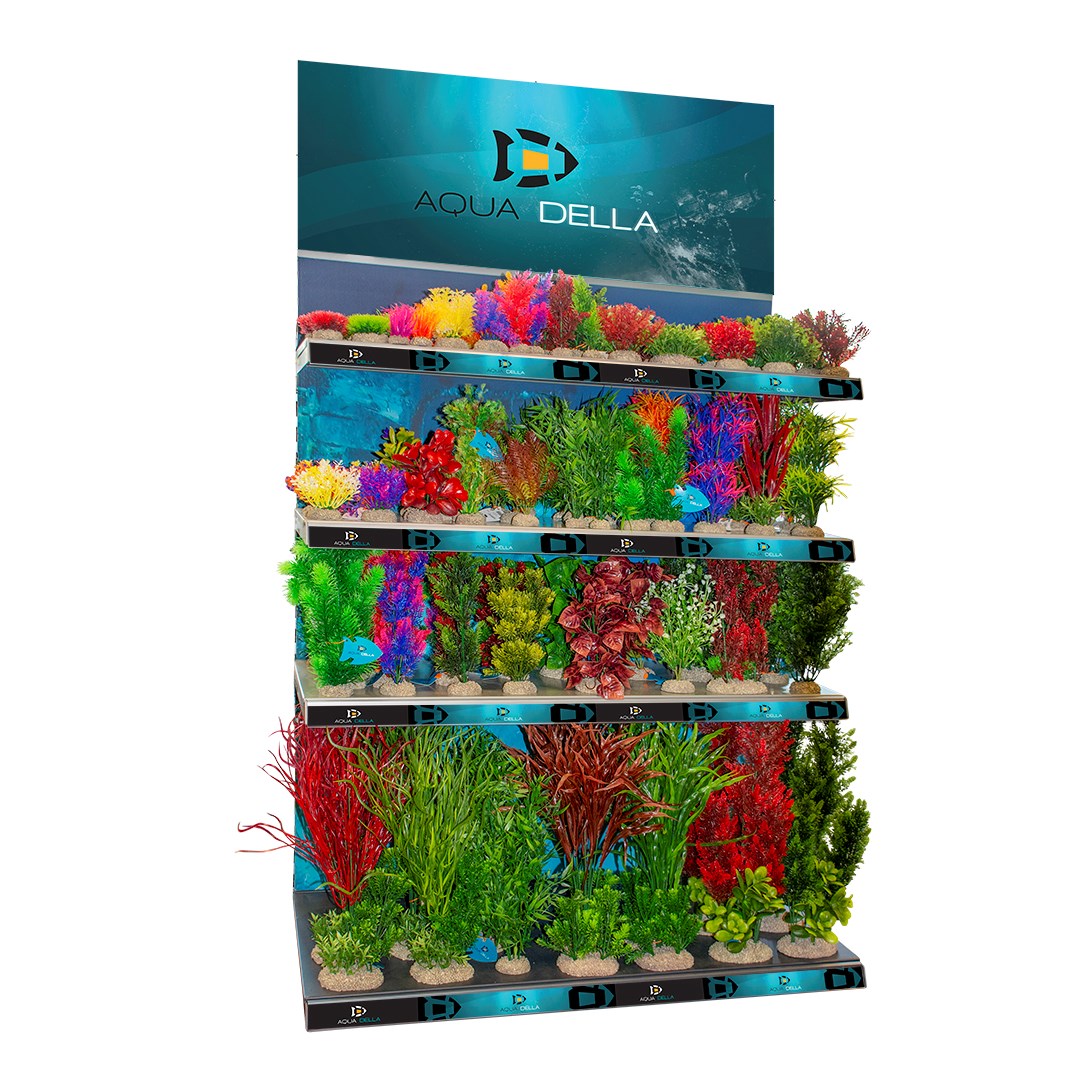 Breng kleur en leven in uw assortiment met de kunstplanten van Aqua Della. Deze kwalitatieve imitatieplanten zijn zorgvuldig ontworpen om er levensecht uit te zien en zich natuurlijk te bewegen in de stroming van het water. Dankzij de stevige voet in kunsthars blijven ze stabiel op de bodem staan. Naast hun decoratieve functie creëren de