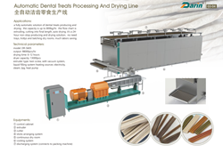 Pet Treats Extruding Linecan produce dog chew snacks and semi moist pet food. It combines two processing lines into one. With different moulds, various shapes can be made, such as strip, stick, screw shape, Also, we can provide all kinds of recipe to make different tastes to full the demands of pet both for nutrition and chewing hobby. Flow chart: Raw Material Mix – Screw Conveying – Extruding – Cooling – Cutting  Cooling